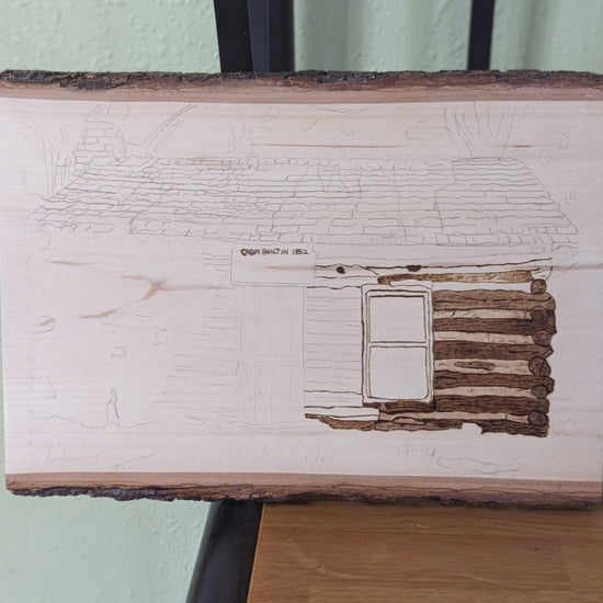 This wall art cabin is hand-burned on live edge basswood with a hand-held burner. This pyrography cabin artwork is ready to hang and will complement a variety of interior styles, from rustic and farmhouse to contemporary and cozy. Whether displayed in a living room, cabin, office, or mountain retreat, this hand-burned creation will infuse your space with warmth, artistry, and the spirit of nature. It is approximately 11x 8 inches.