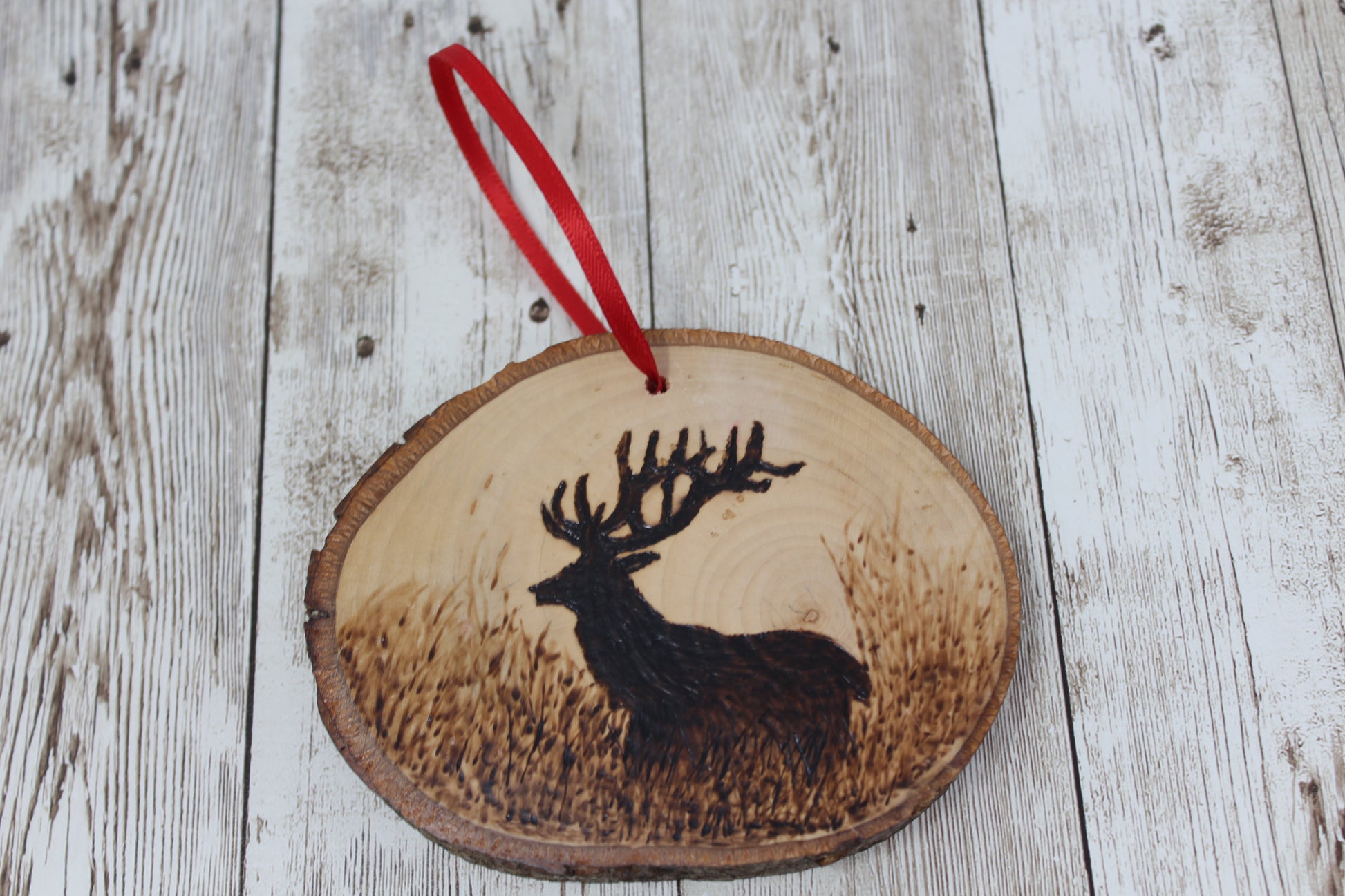 This free hand-burned ornament will be perfect for any Christmas Tree. Hang it where you would like to have any rustic decor.