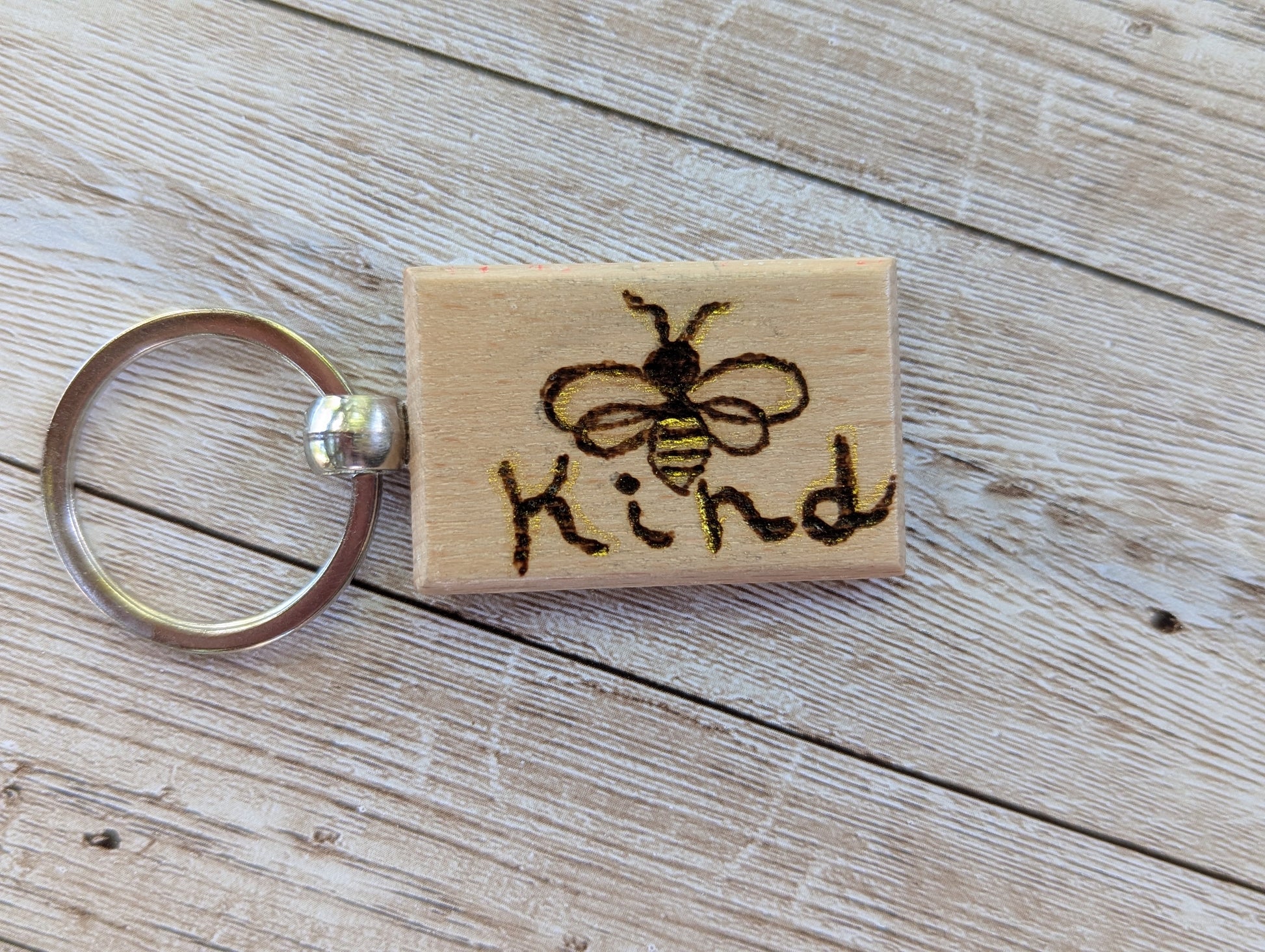 Handcrafted Pyrography Bee & "Kind" Keychain – A Sweet Reminder to Spread Kindness