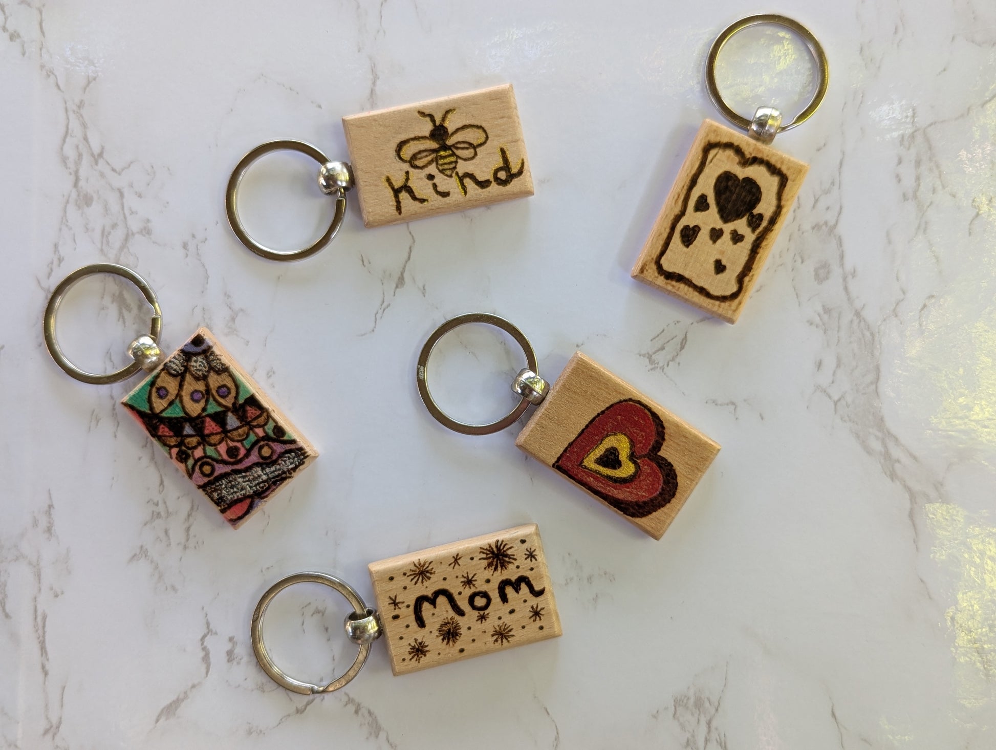 Each keychain is carefully crafted with intricate detail using traditional woodburning techniques, making it a perfect gift for someone who embodies kindness or a thoughtful treat for yourself to carry every day.
