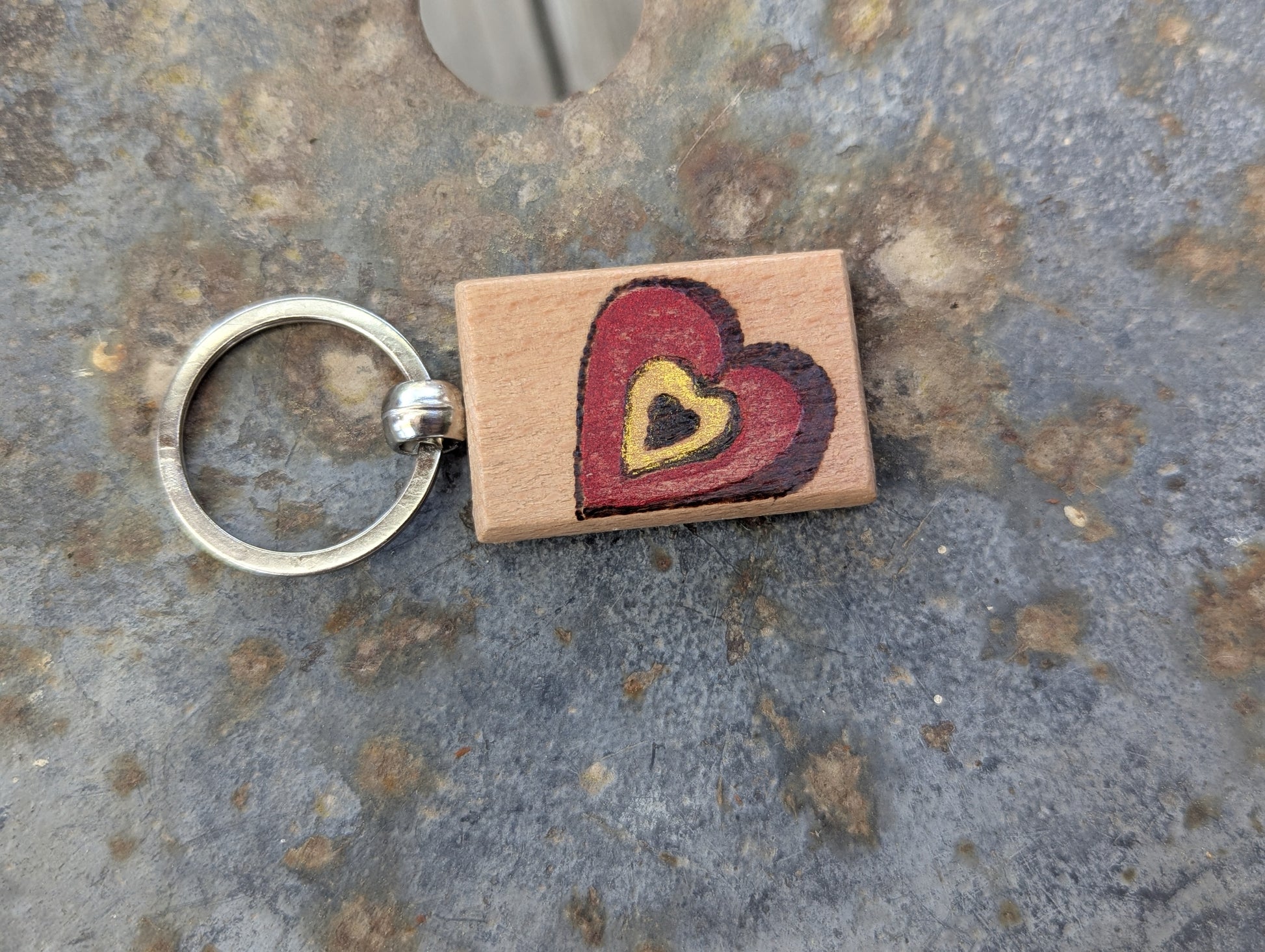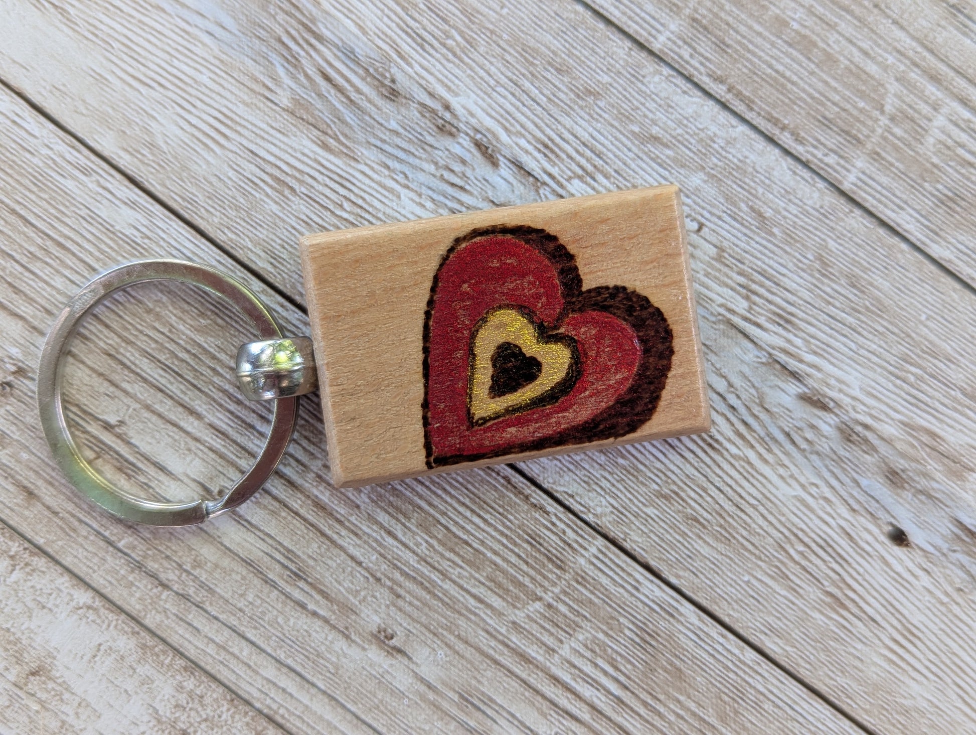 Handcrafted Pyrography Heart Keychain – With a Touch of Color