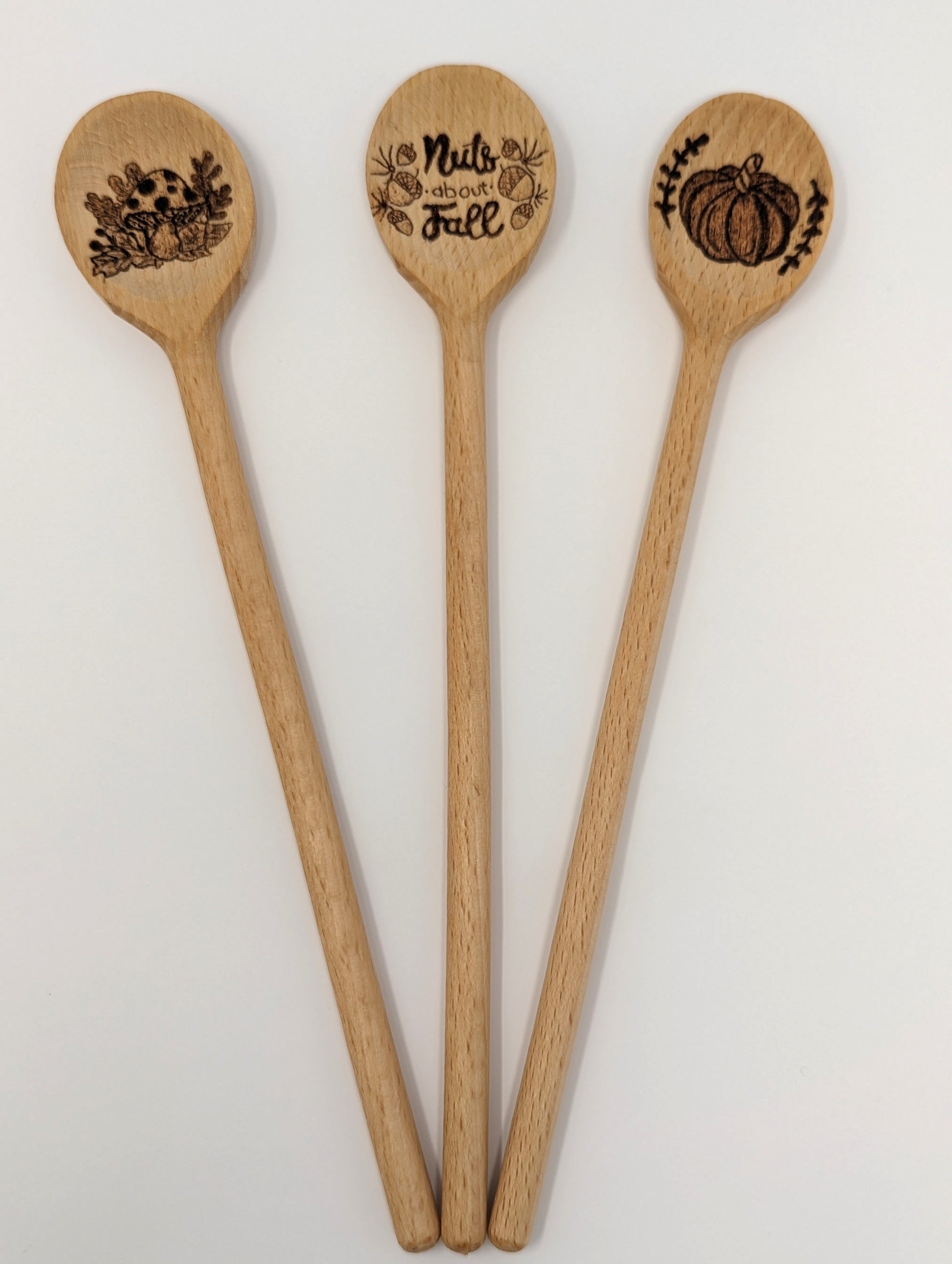 Woodburned Wooden Spoons Fall Designs Individual Spoon, Food safe wooden spoons for cooking, handmade gifts, housewarming or decor